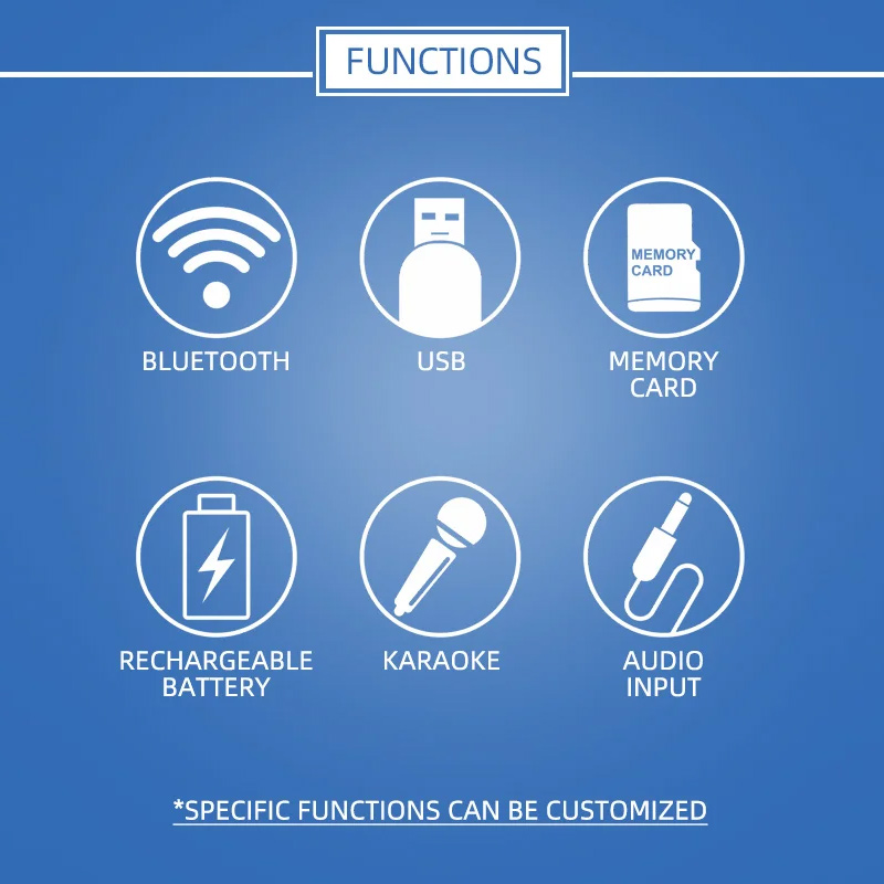 Podržani režimi: FM / USB / TF (microSD) / Bluetooth / MIC / AUX / TWS