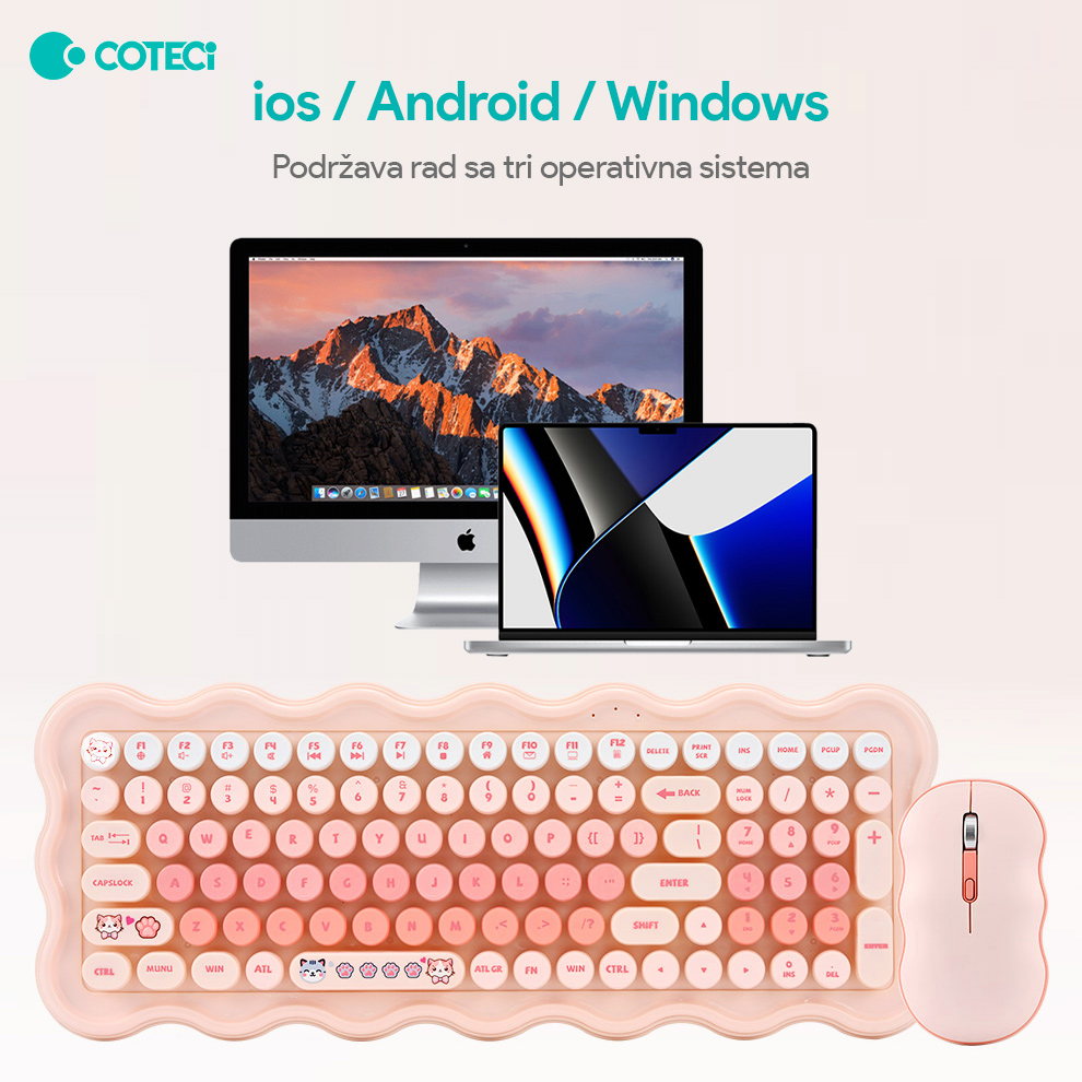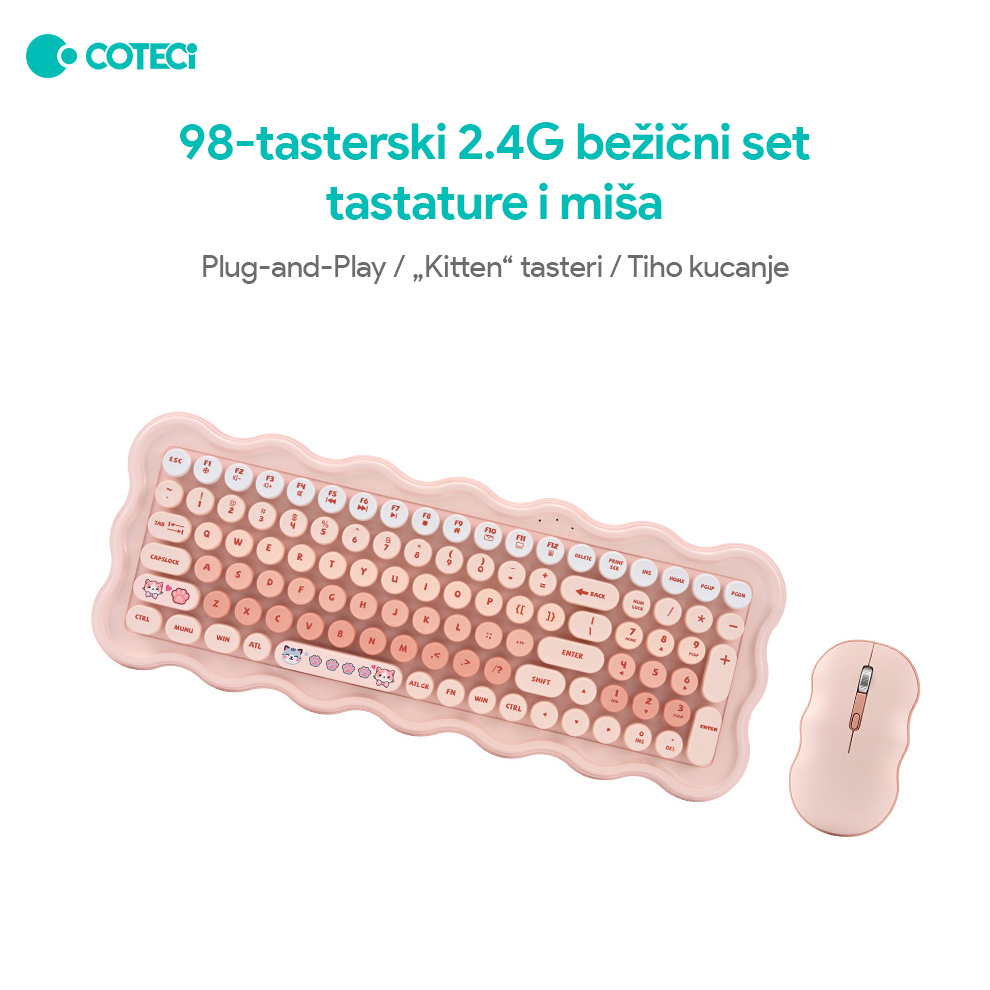 Combo mis i tastatura Coteci OF-056 roze