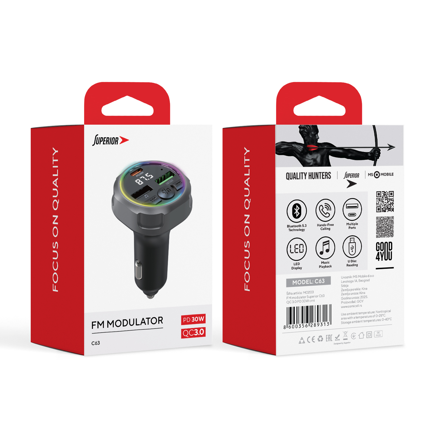 FM modulator Superior C63 QC 3.0 PD 30W crni (MS)