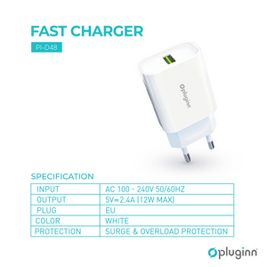 Kucni punjac Pluginn PI-D48, 5V, 2.4A, 12W sa lightning kablom beli CE
