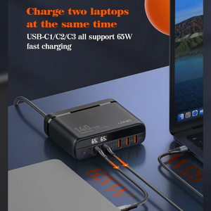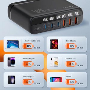 Kucni punjac sa adapterima LDNIO A6140C GaN PPS 3xQC3.0 (30W), 3xPD3.0 (100W), 140W Max, a Type C na Type C kablom crni