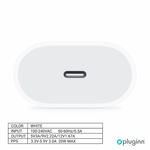 Kucni Punjac Pluginn AJ-20 A2347 EMC3621 PD Fast 20W za iPhone 11-14 sa PD Type C kablom CE beli