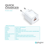 Kucni punjac Pluginn PI-D73-33w, GaN, QC3.0 PD3.0, PPS, USB-PD 20W+33W, 53W (total) sa PD iPhone lightning kablom beli CE
