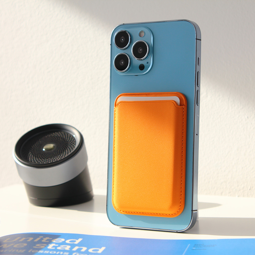 Maska / futrola Leather Magsafe Pocket za iPhone 12 narandzasta