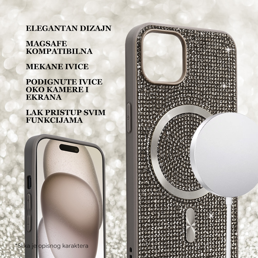 Maska / futrola Magsafe Glam za iPhone 14 srebrna