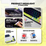 Tastatura Mehanicka Gaming Fantech MK874V2 RGB Atom 63 Mori bela (Blue switch)