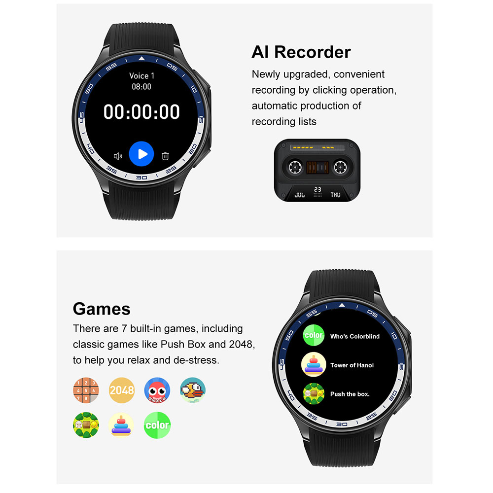 - Funkcije: Sportski režimi rada, praćenje rada srca, praćenje sna, vremenska prognoza, merenje zasićenosti krvi kiseonikom (SpO2), upravljanje muzikom, vežbe disanja, kontakti, poruke, kalkulator, igre, alarm, štoperica, tajmer, lampa, opcija pronalaska telefona (kada je telefon povezan), upravljanje kamerom, 9 stilova menija, podešavanje osvetljenja, podsetnici, 3D meni, galerija, TWS povezivanje, video plejer