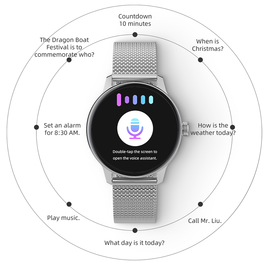 - Funkcije: Poruke, pozivi, često korišćeni kontakti, fitness podaci, sportski režimi rada, upravljanje muzikom, praćenje sna, štoperica, vremenska prognoza, glasovni asistent, alarm, kalkulator, vežbe disanja