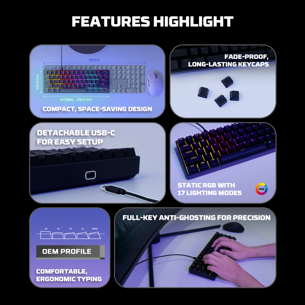 Tastatura Mehanicka Gaming Fantech MK211 RGB Atom61 crna (red switch)