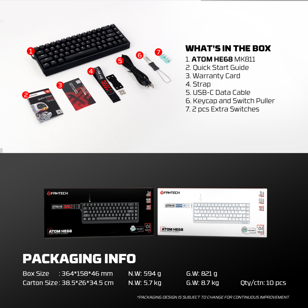 Tastatura Wired Magnetic Gaming Fantech MK811 RGB Atom HE68 bela (emerald switch)