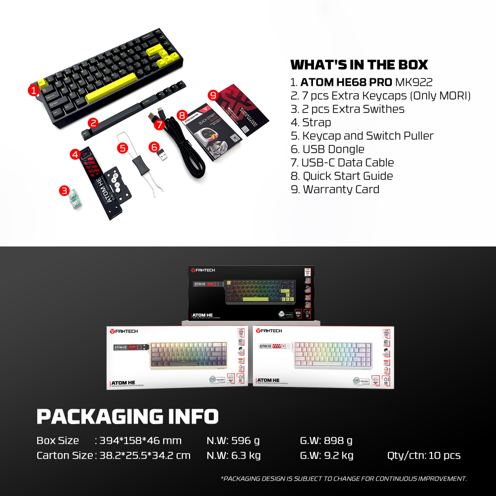 Tastatura Wired Magnetic Gaming Fantech MK922 Atom HE68 Pro Topo bela (emerald switch)
