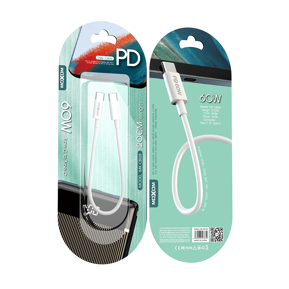 USB data kabl Moxom MX-CB128 60W Type-C na Type-C PD 20cm beli (MS)