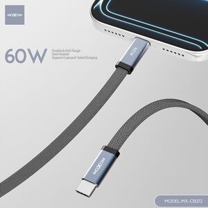 USB data kabl MOXOM MX-CB372 pleteni Fast 60W 3A Type-C na Type-C 1m crni (MS)
